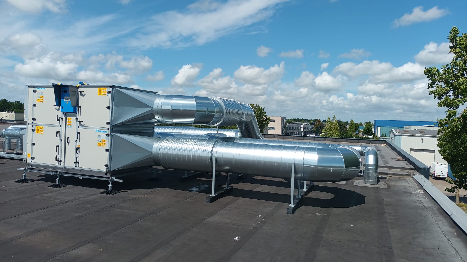 Ook de volledige luchtkanalen zijn door ons eigen team aangebracht. Deze zijn aangesloten op een Daikin luchtbehandelingskast, die de luchttoevoer en -afvoer verzorgt en de binnenlucht continu ververst.